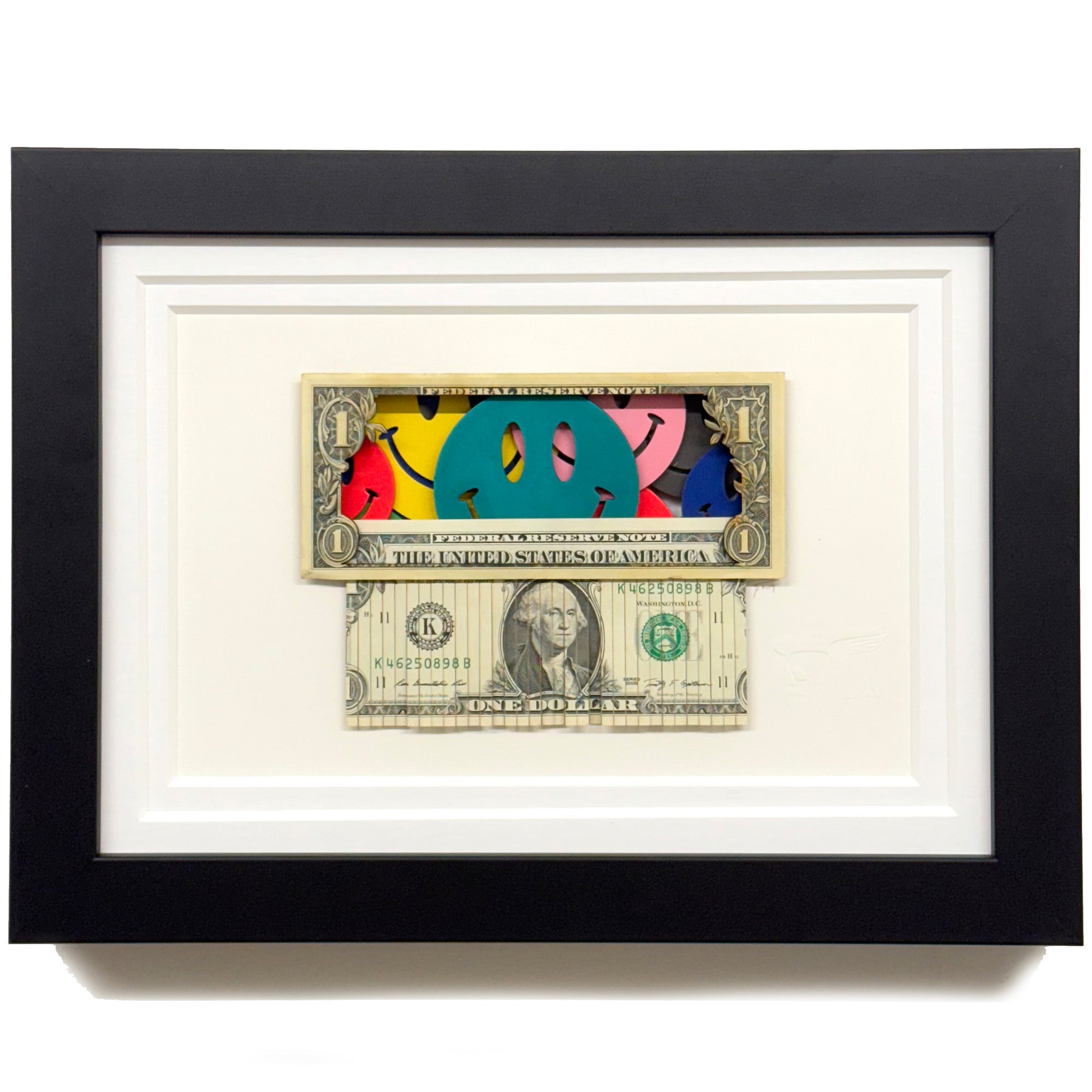 A classic piece from my archive, shredded dollar inspired from Banksy to expose a smiley backdrop.