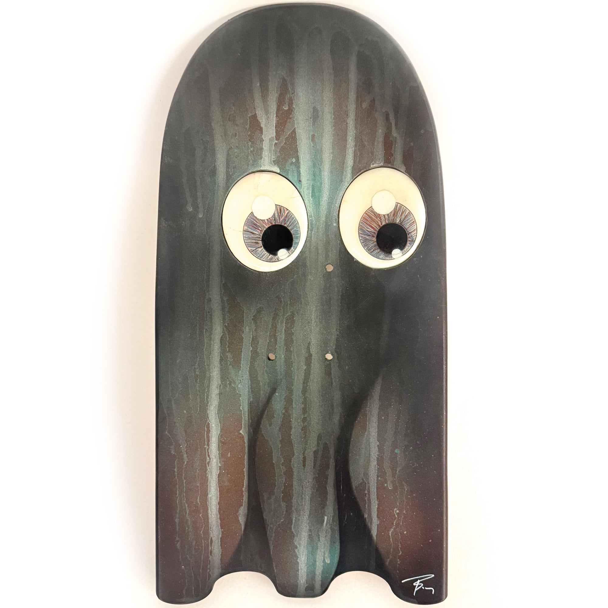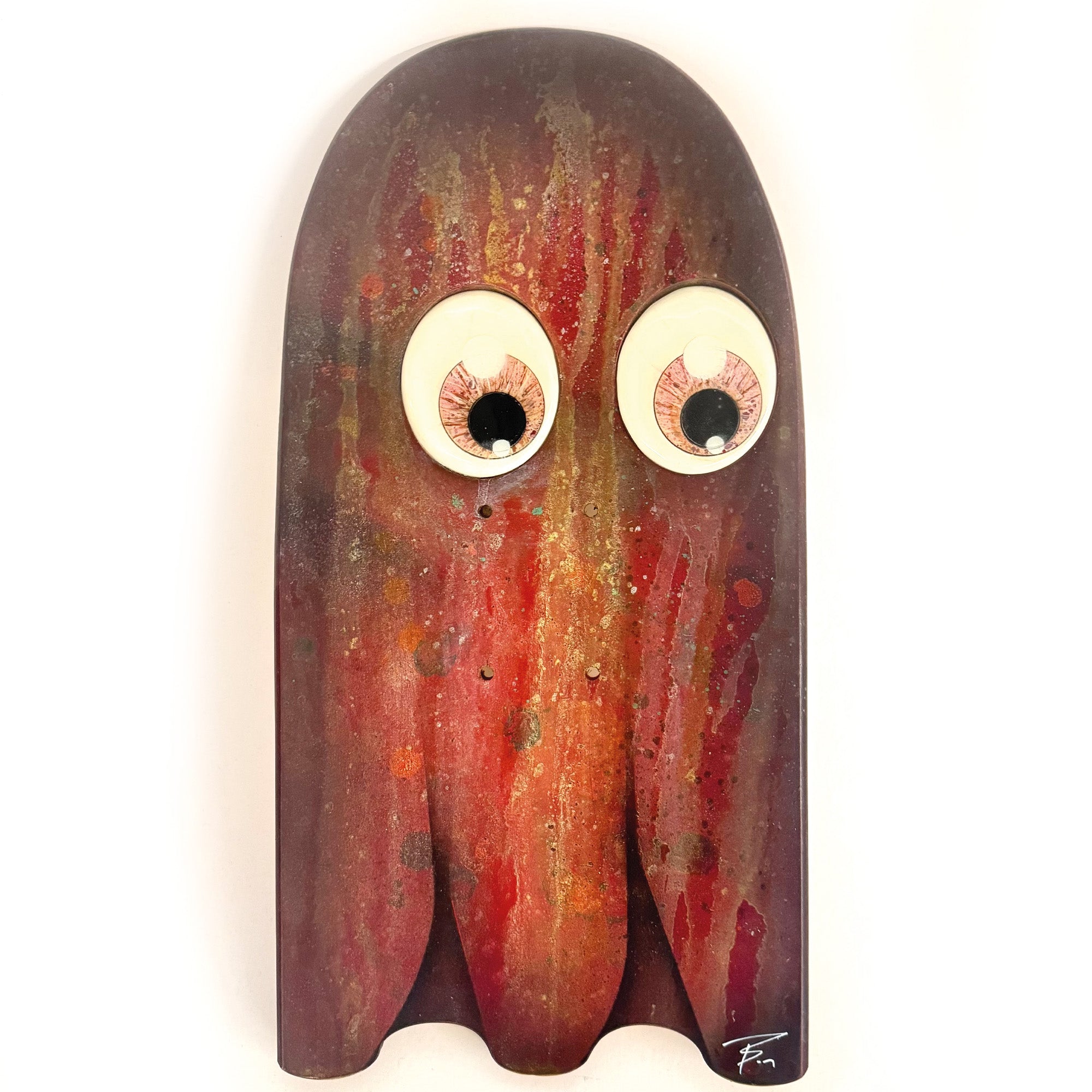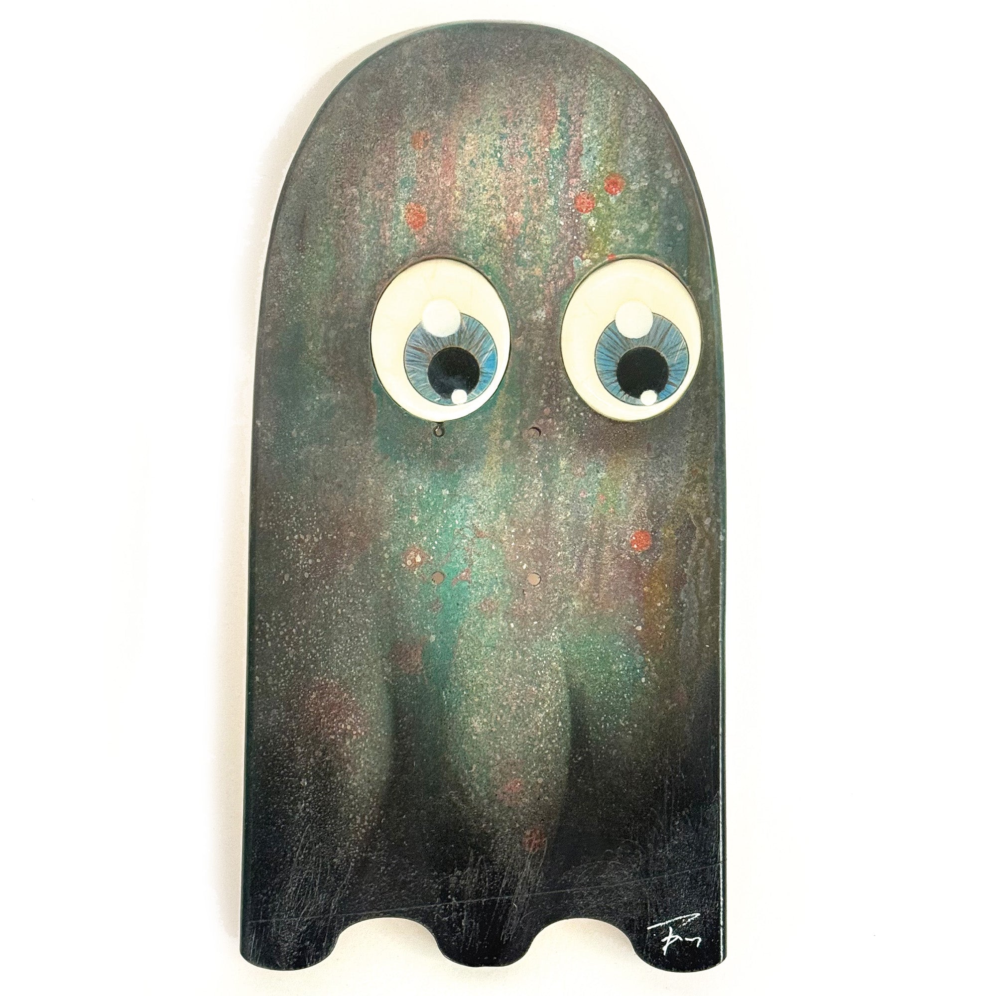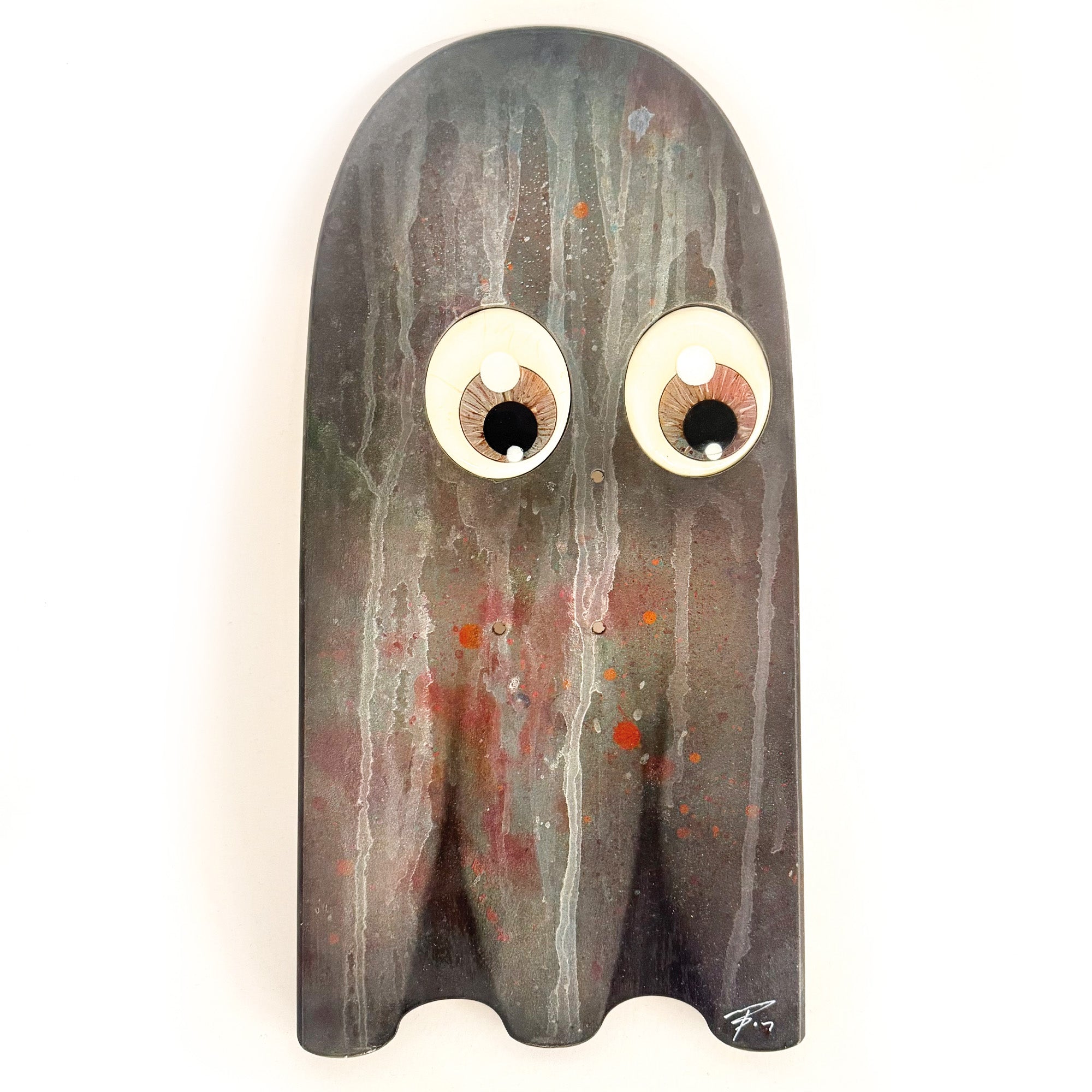 Inspired from vintage Pac Man ghosts, these 1/1 originals have a multi-layered spray can finish, with recessed hand-painted, resin-coated, life-like eyes.