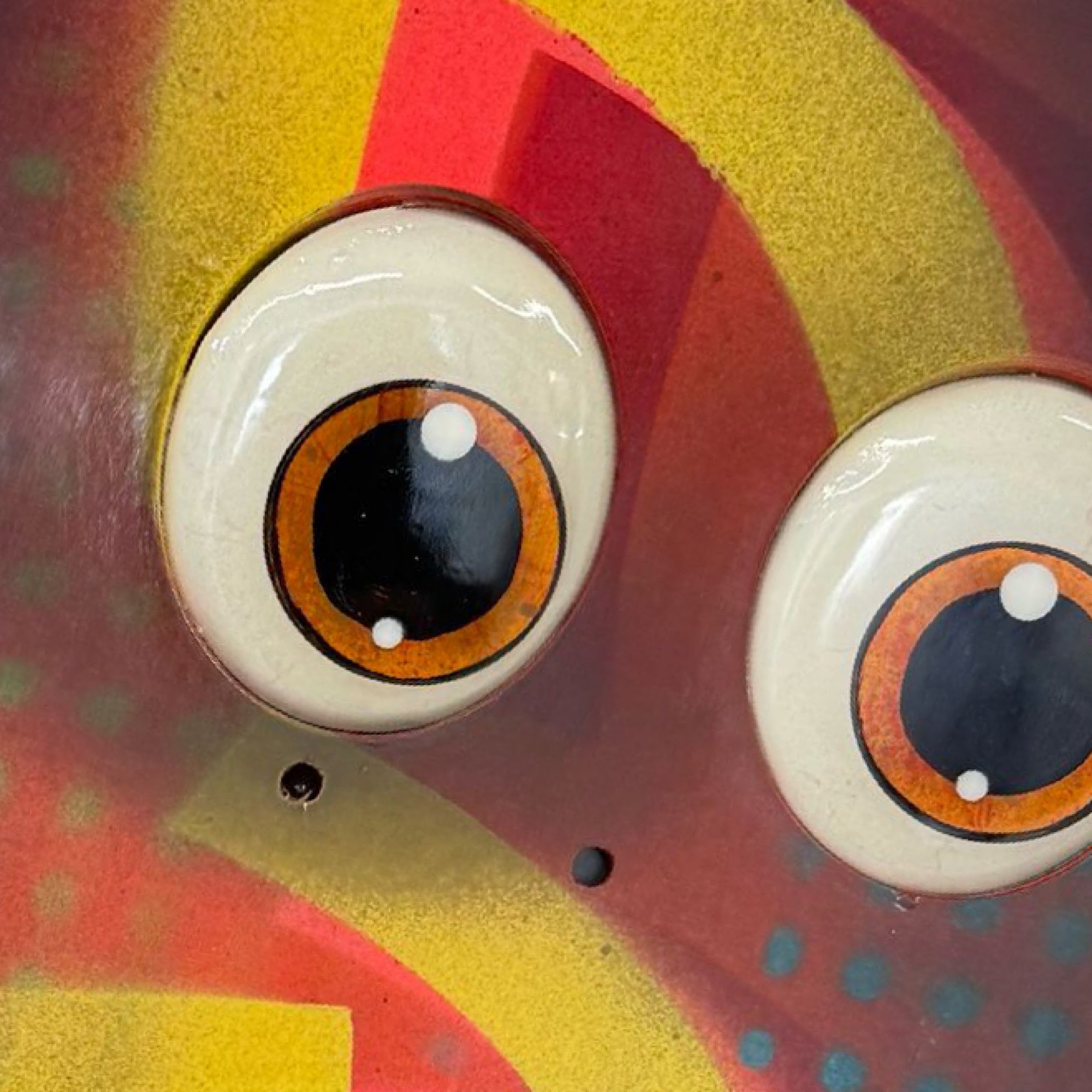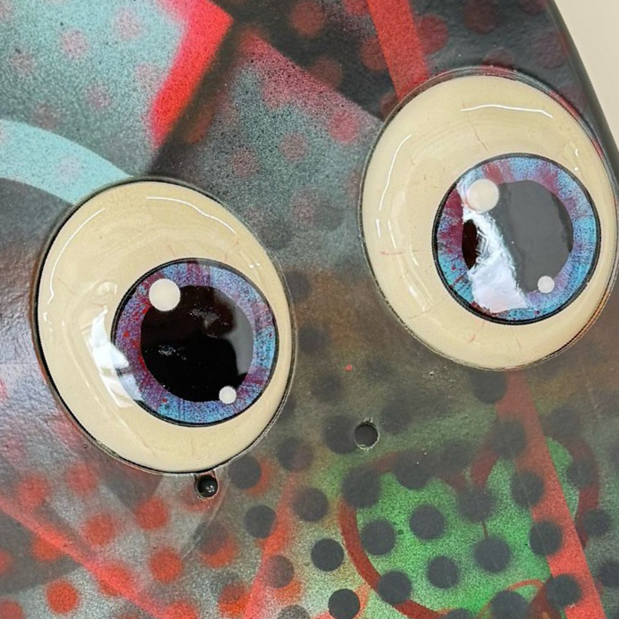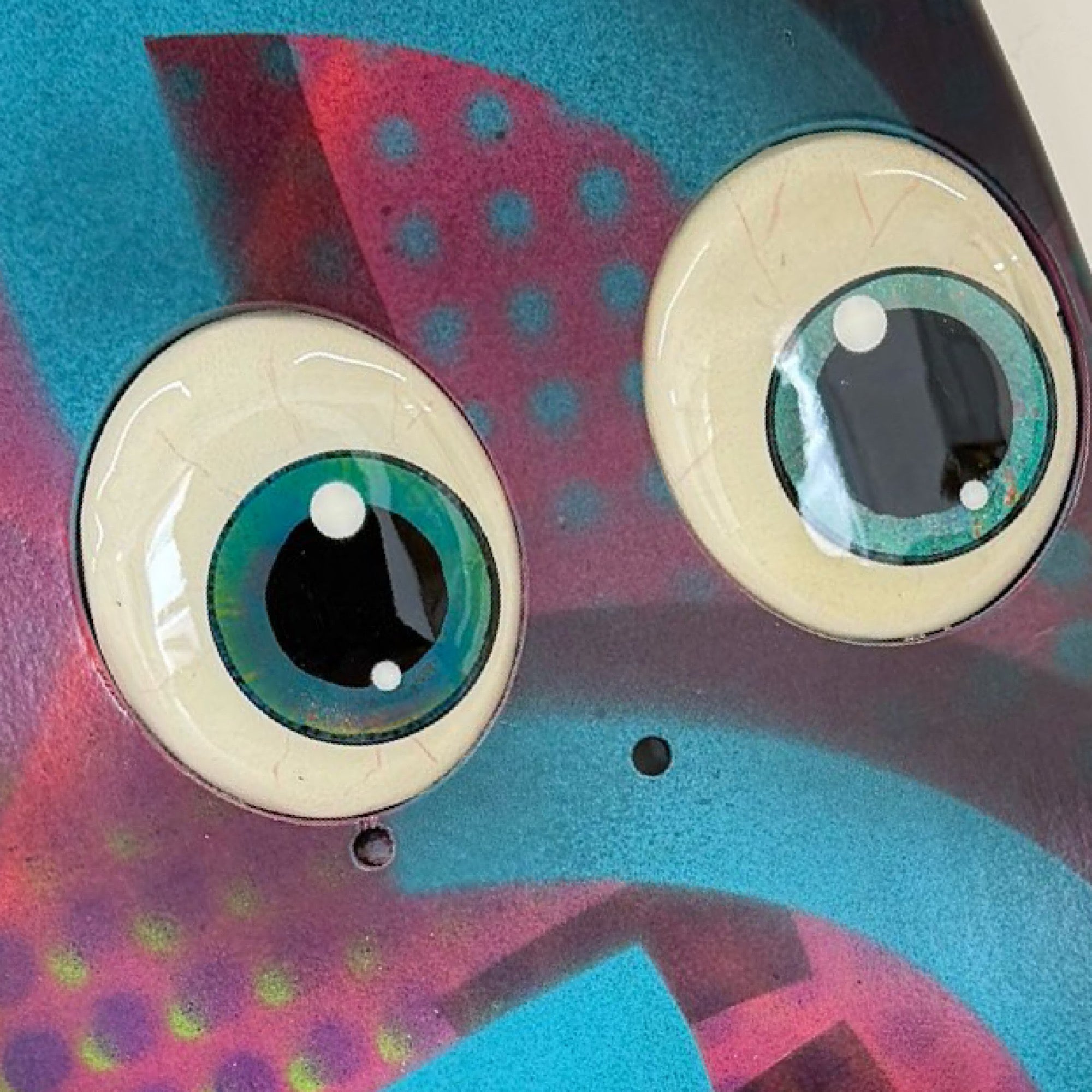 These 1/1 originals have a multi-layered spray can finish, with recessed hand-painted, resin-coated, life-like eyes.