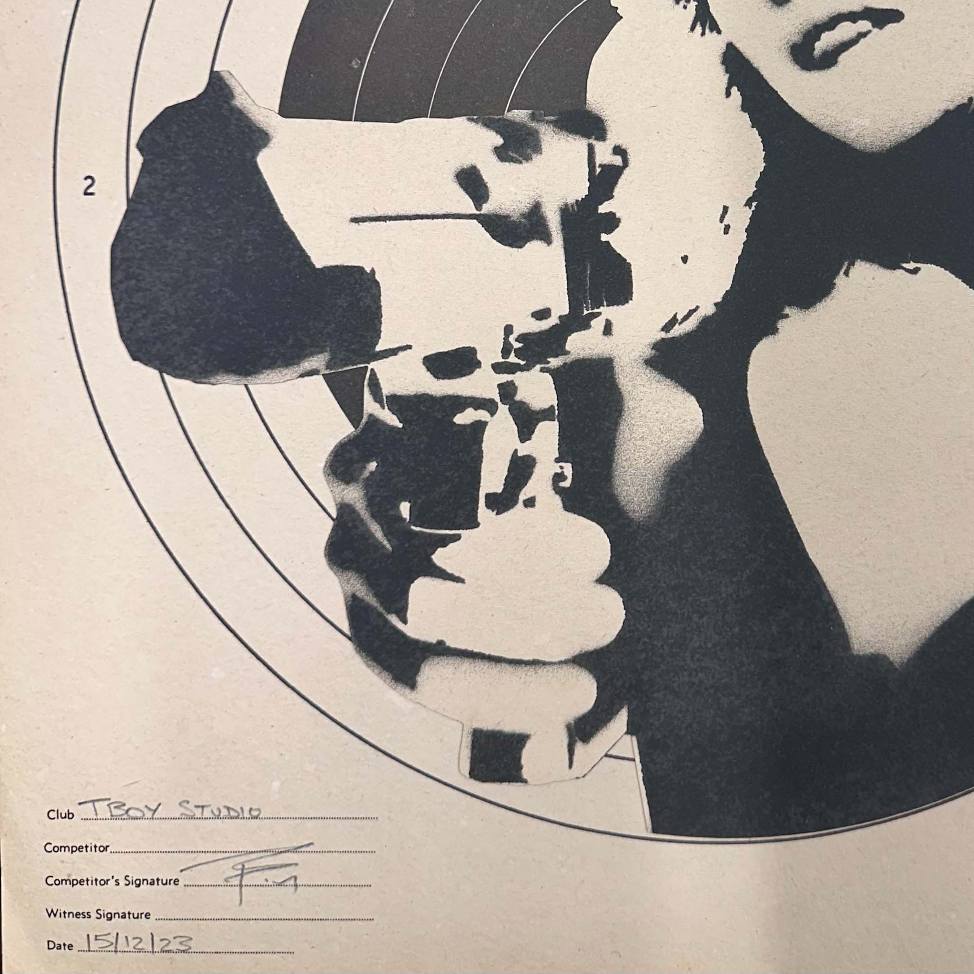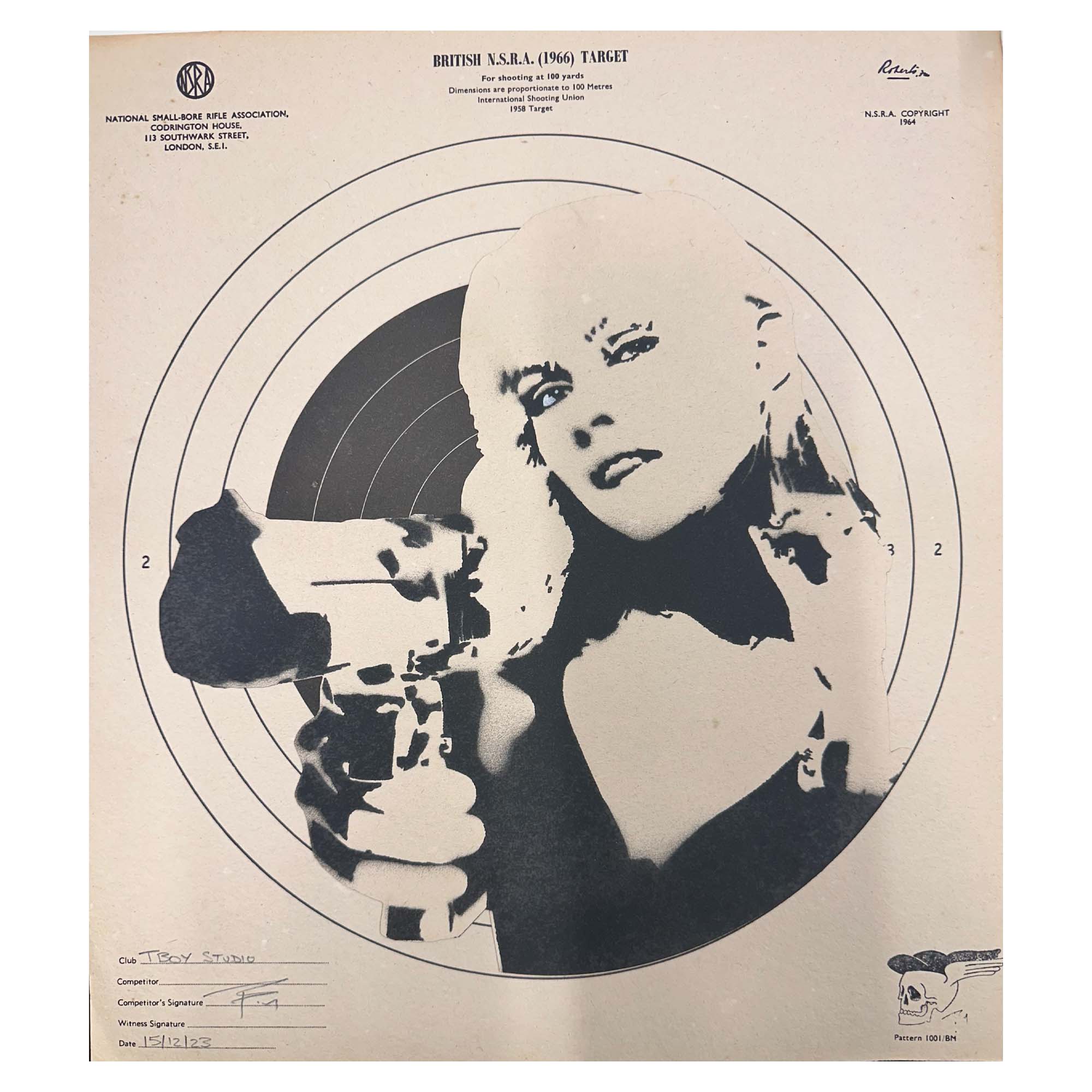 Edition of 5 originals made with 1966 shooting targets. Debbie Harry with revolver stylized to mimic then iconic movie Dirty Harry