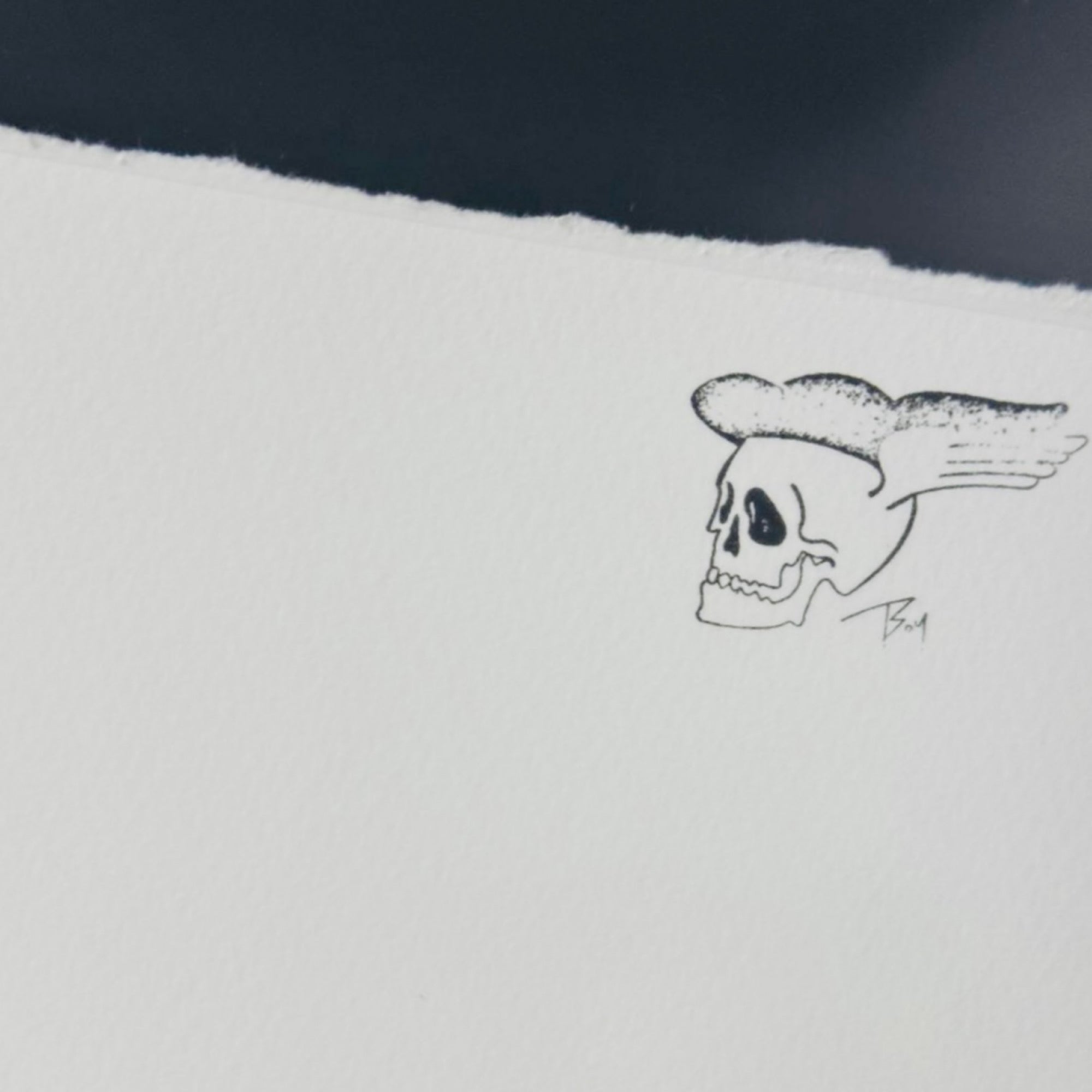 Giclée print onto hand-pressed paper, with spray can finish onto box frame