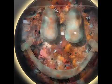 A large sculptural wall piece made in wood with gesso finish and multi layered spray can work to create depth. Several coats of resin are built up to a glass finish.