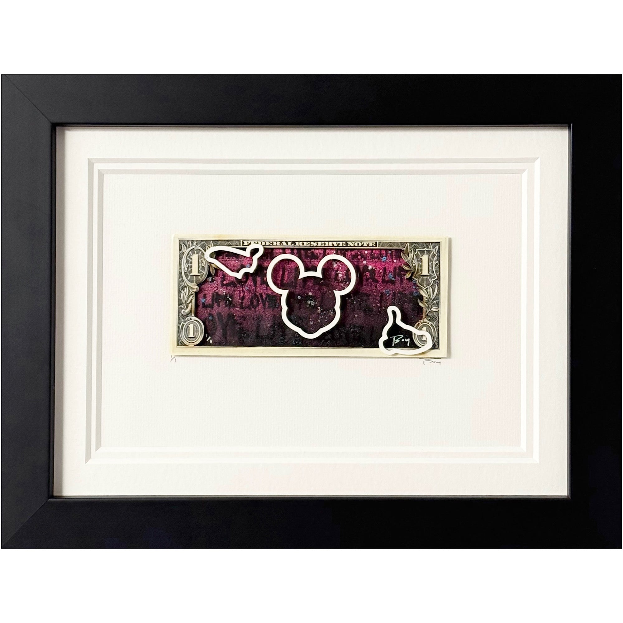 Spray can work, Posca ink pens and laser cut pieces, under a genuine $1 bill.