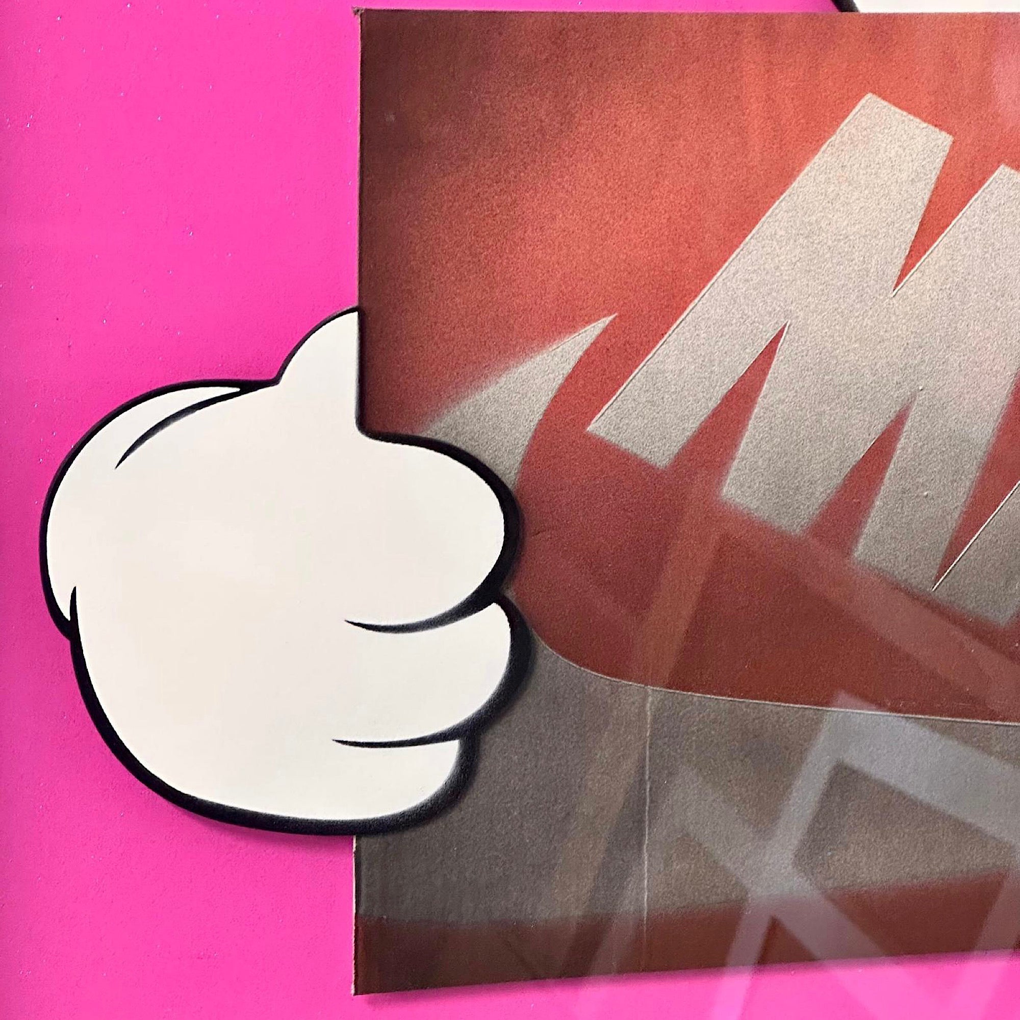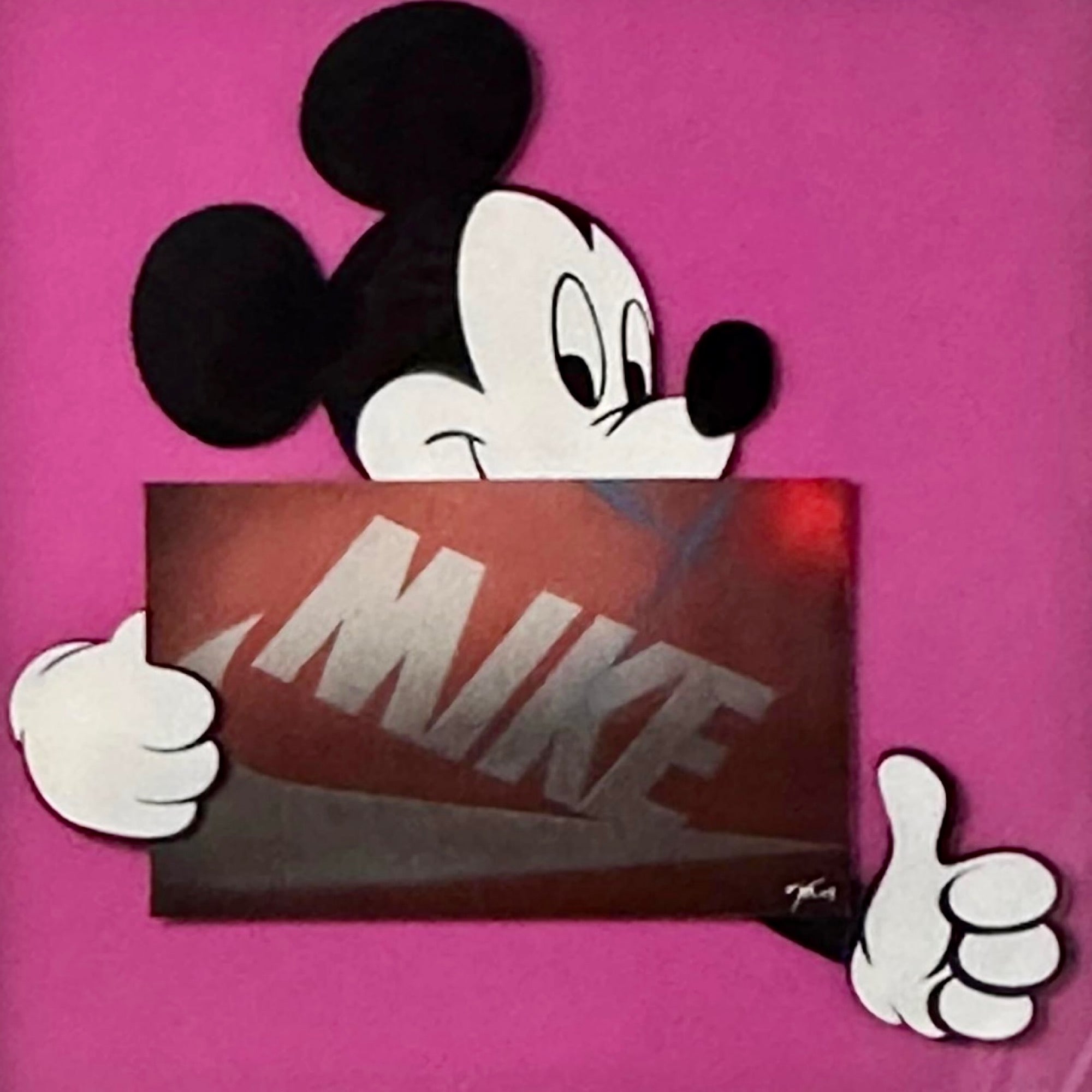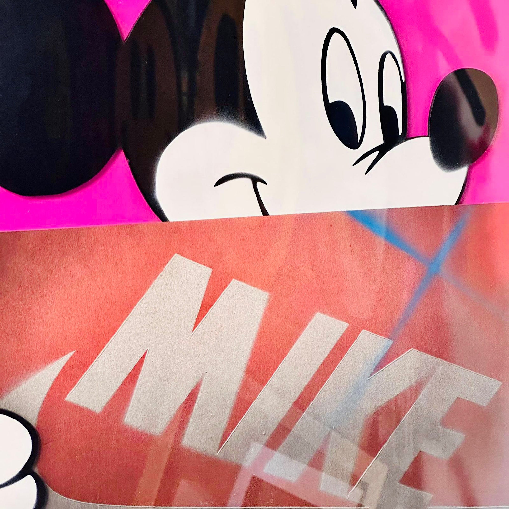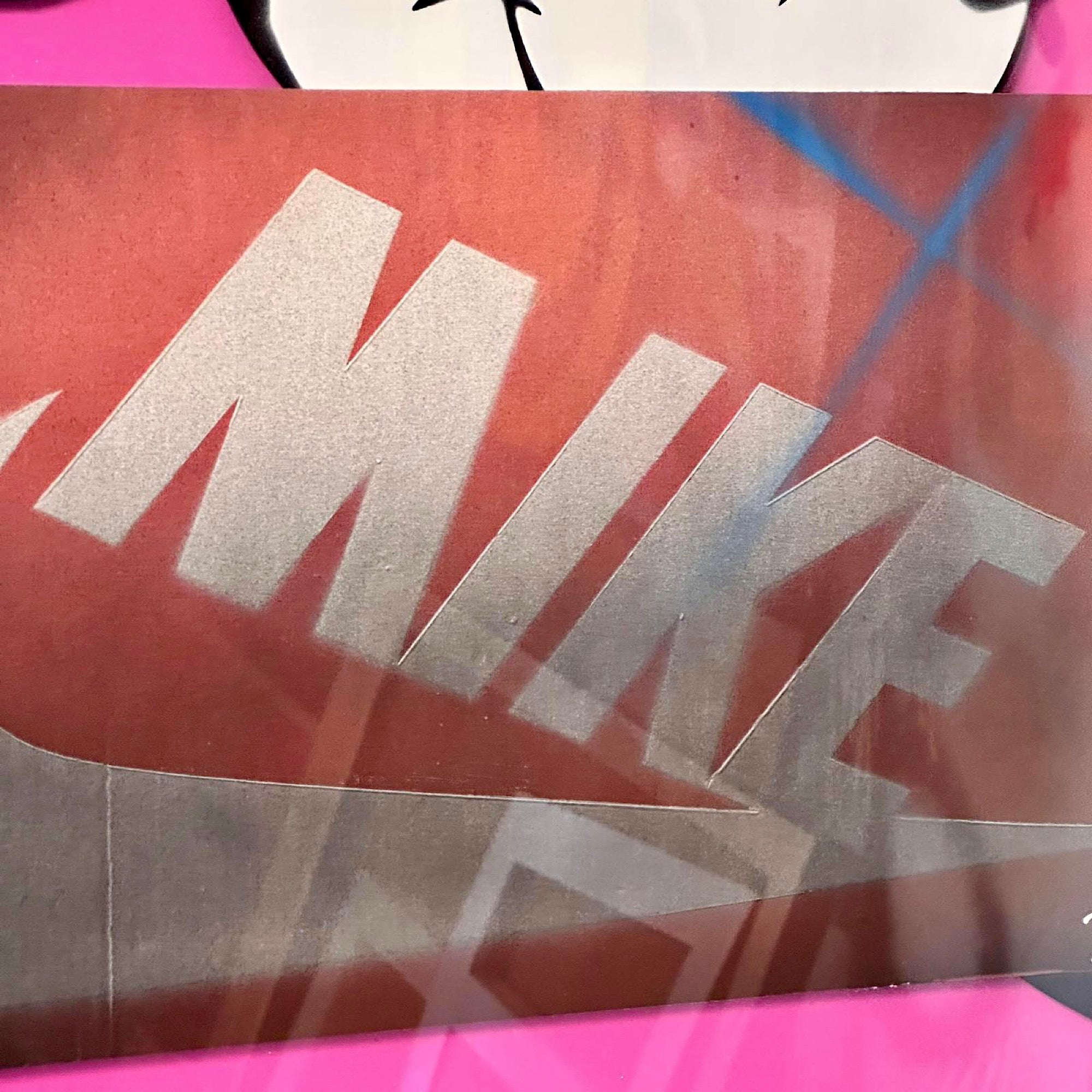 Spray can work onto board, with 3D cut pieces and original Nike box.