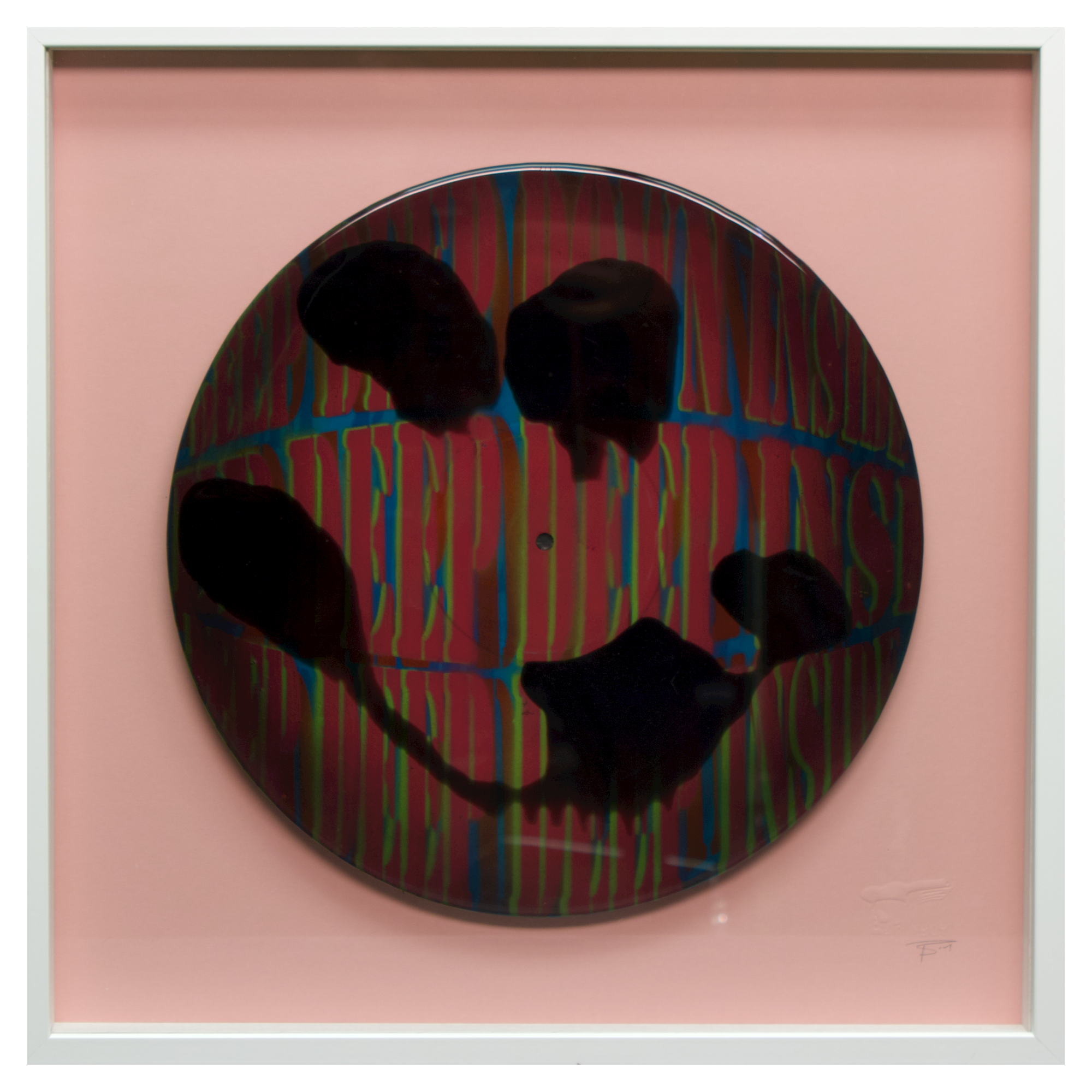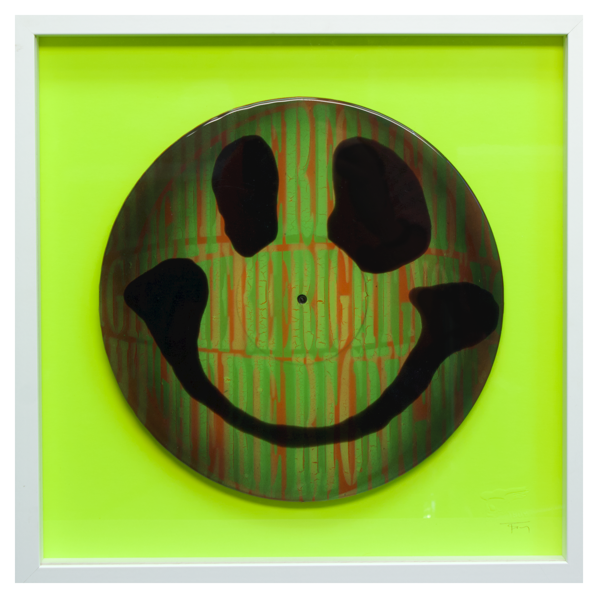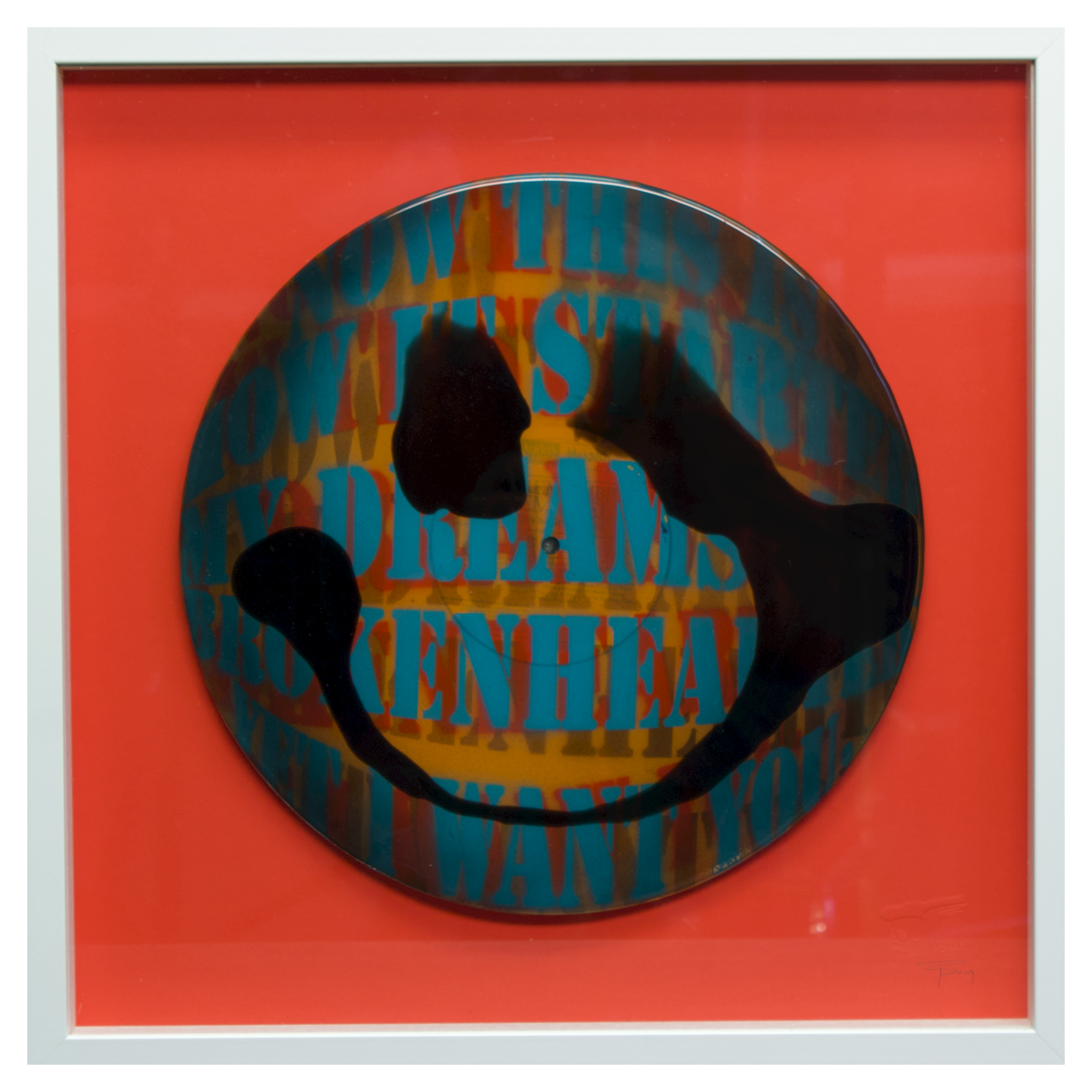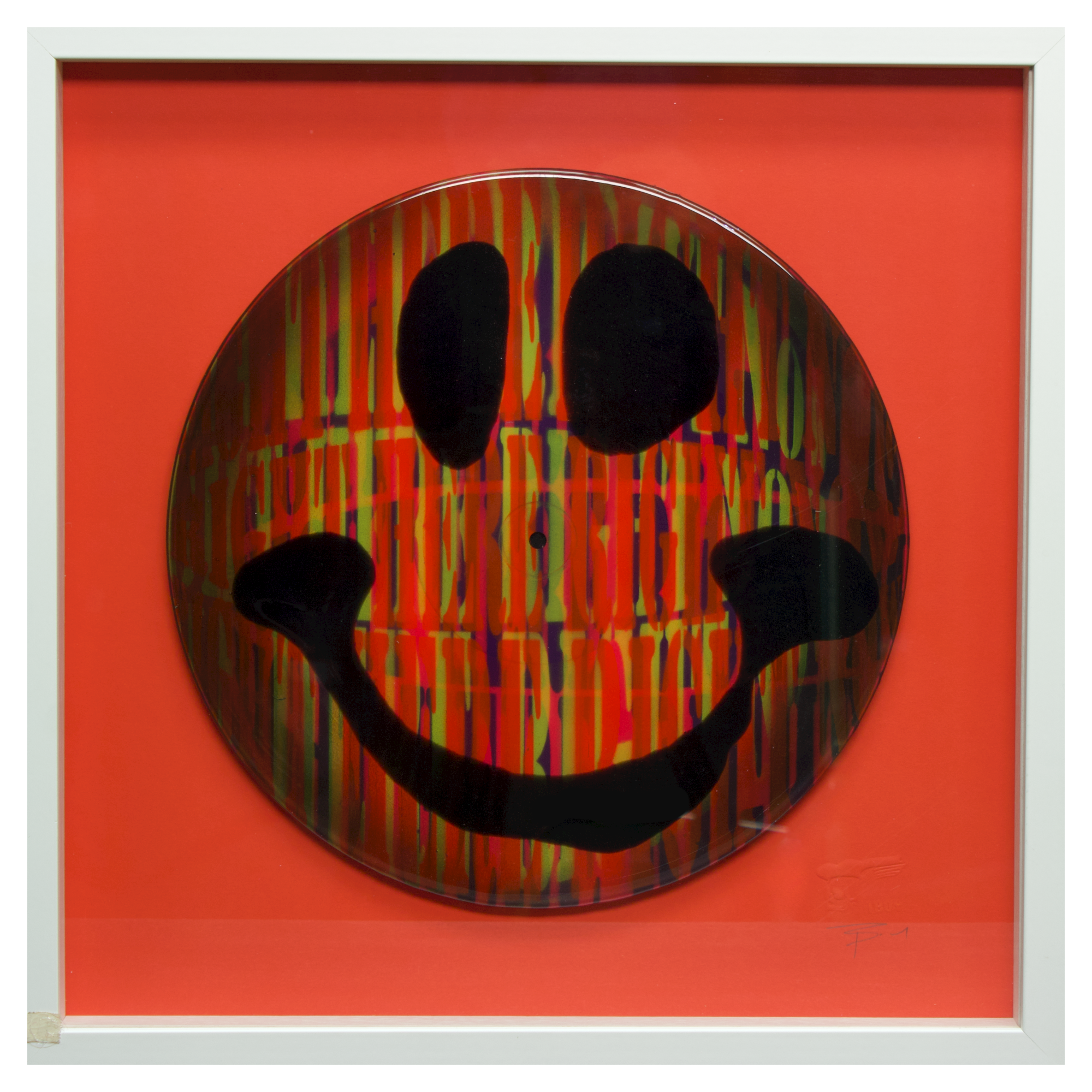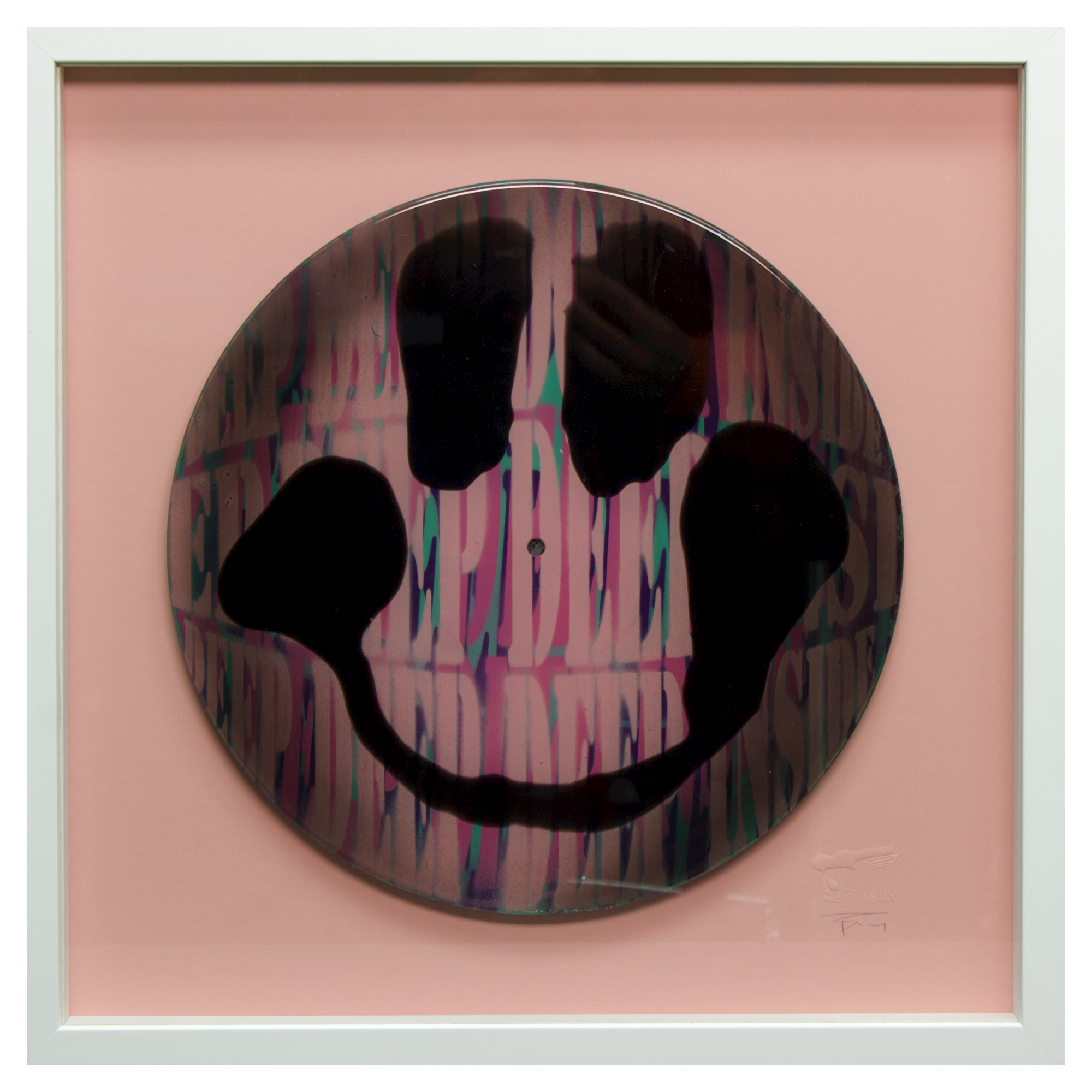 Hand painted and multi layered with classic house music lyrics under resin smile with resin finish