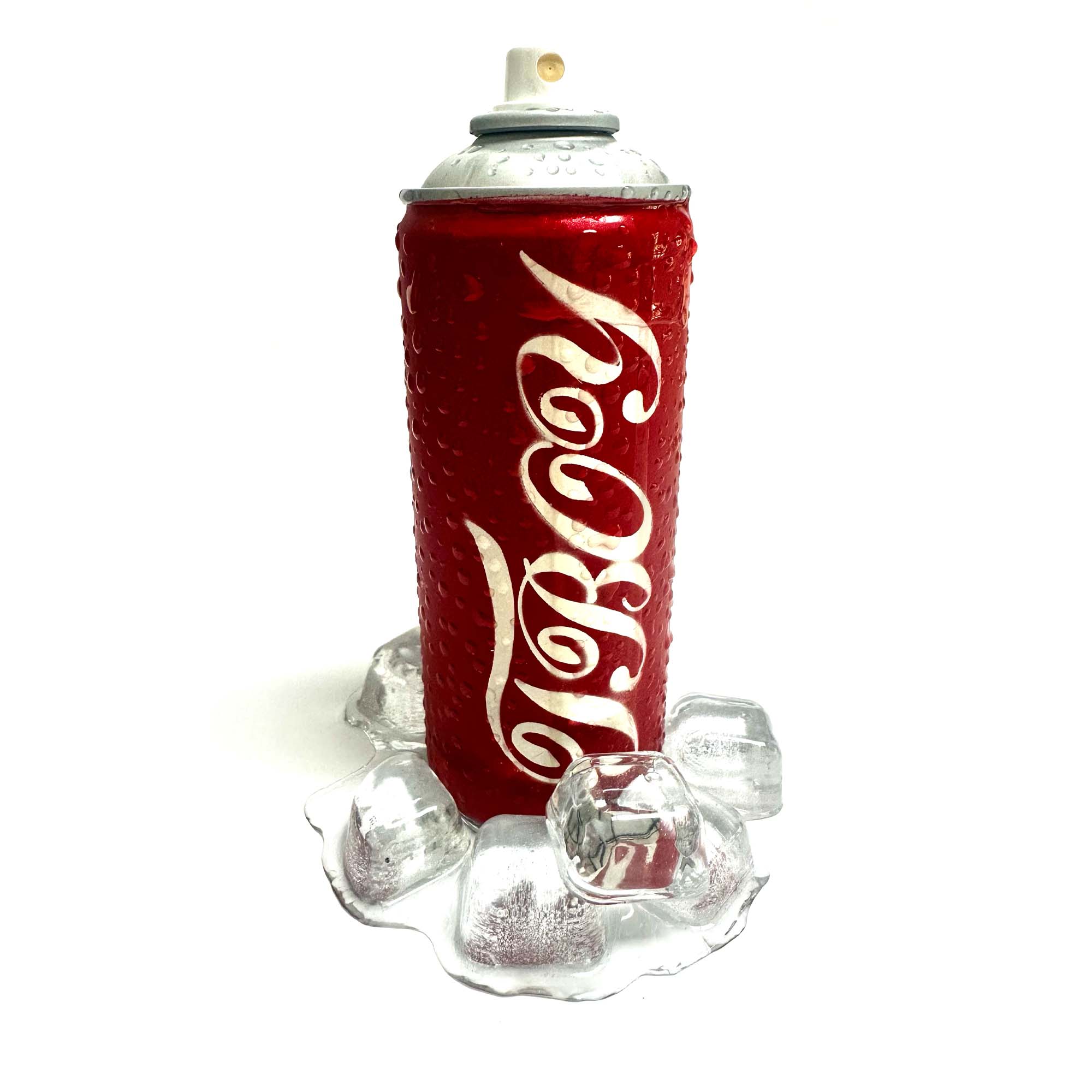 I wanted to recycle the cans I use to create my work so came up with this concept. Original can with spray work, resin base with cast ice cubes . All the water droplets are applied by hand to create a chilled wet look.