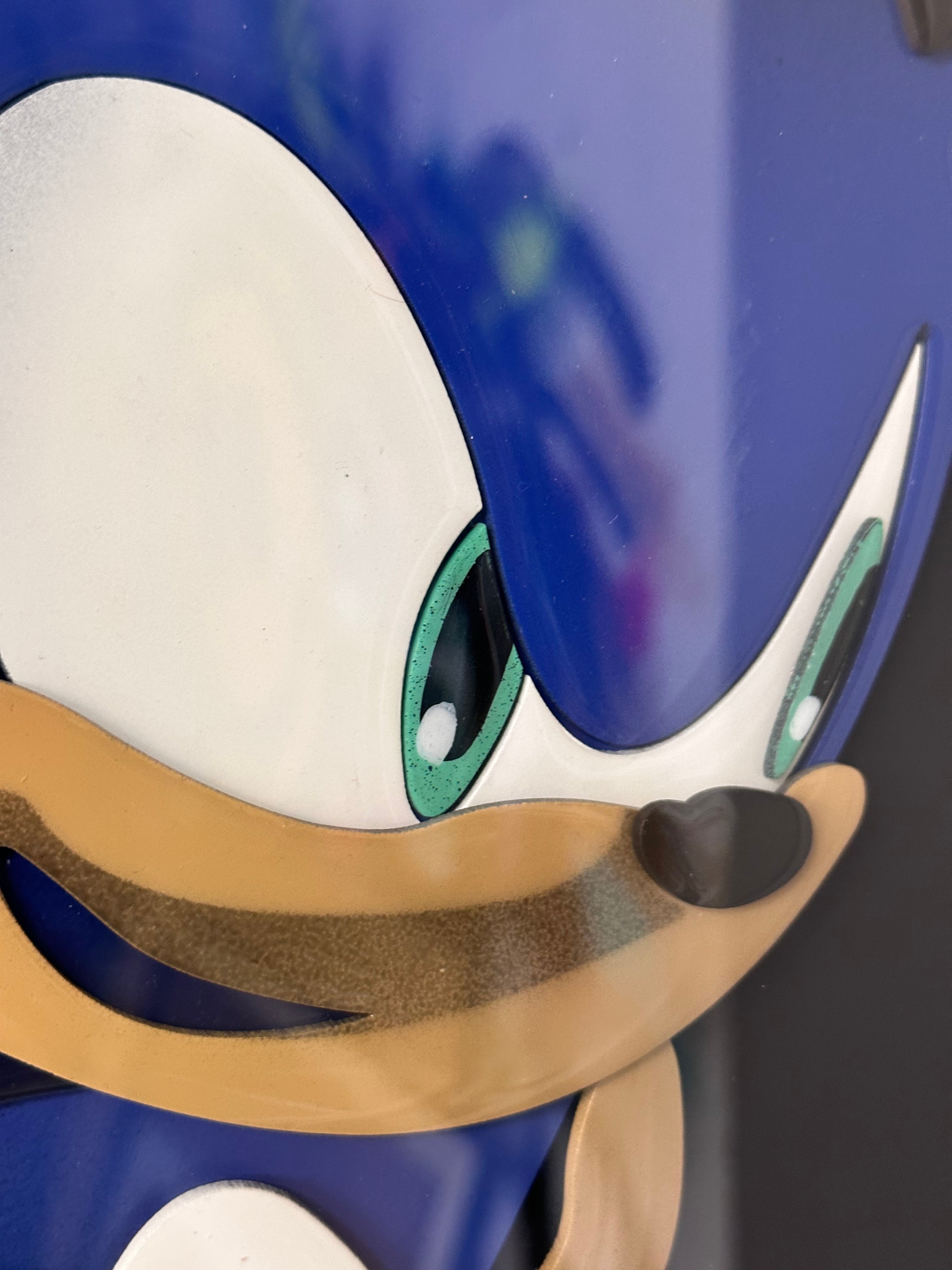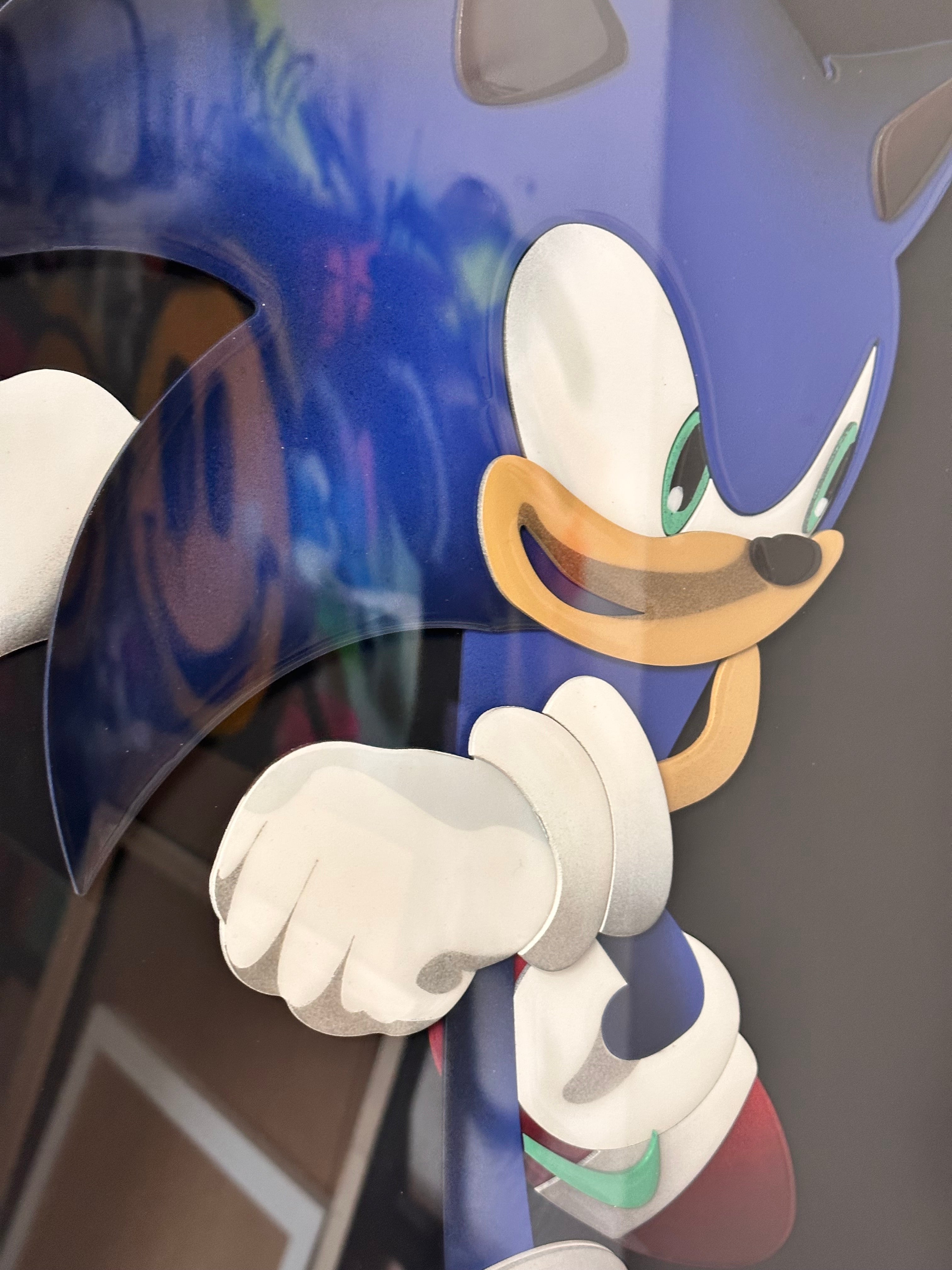 Super happy with this piece. 3D Sonic featuring blended spray can work and resin finish onto deep black backing.