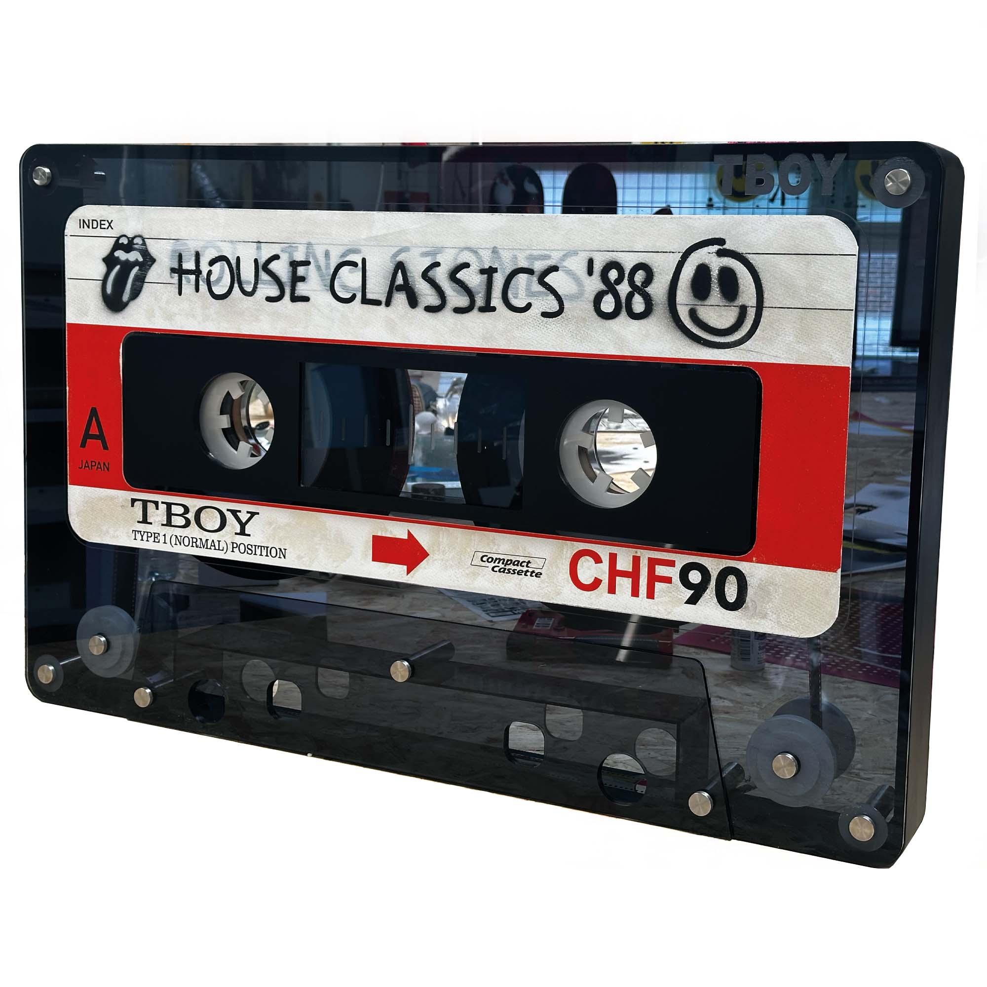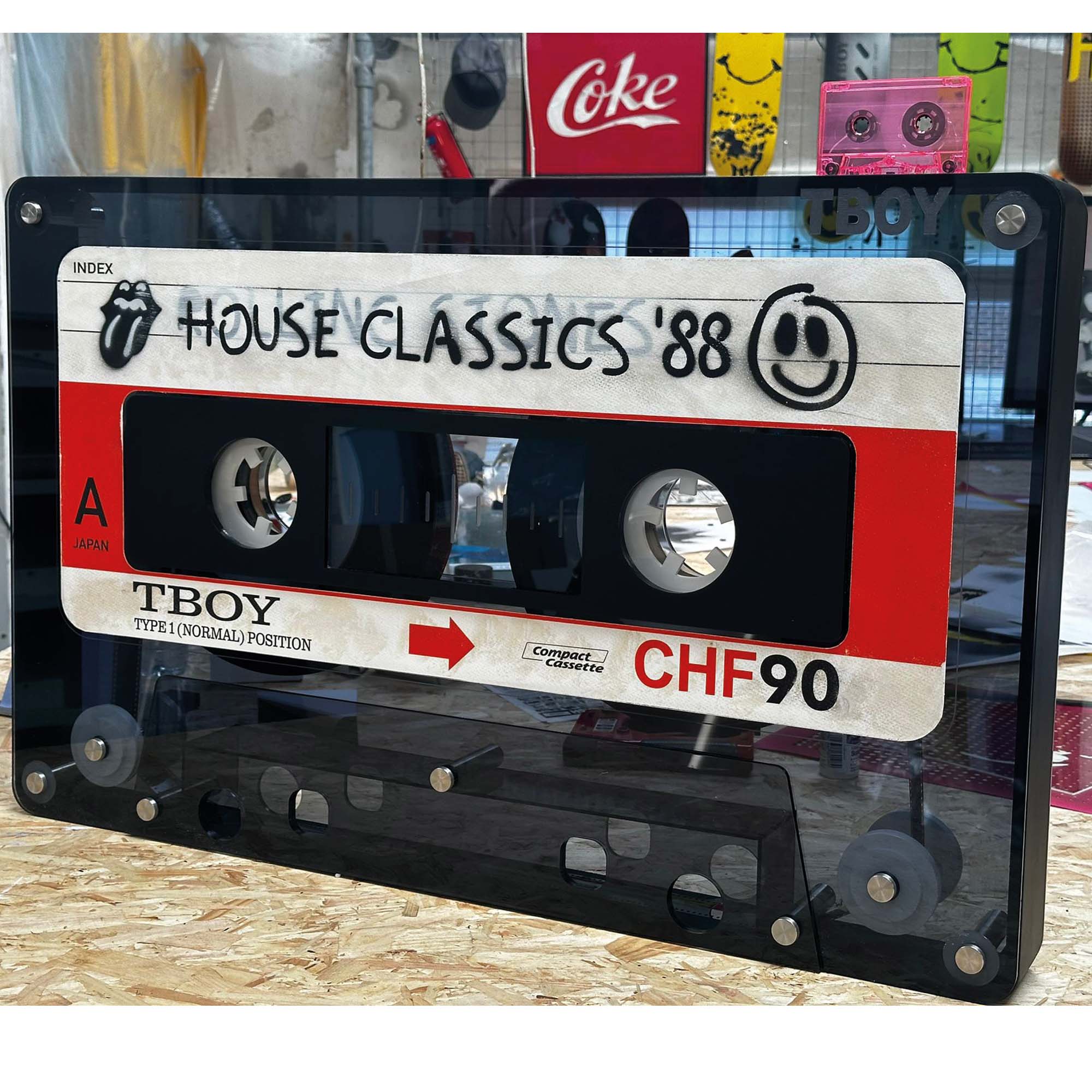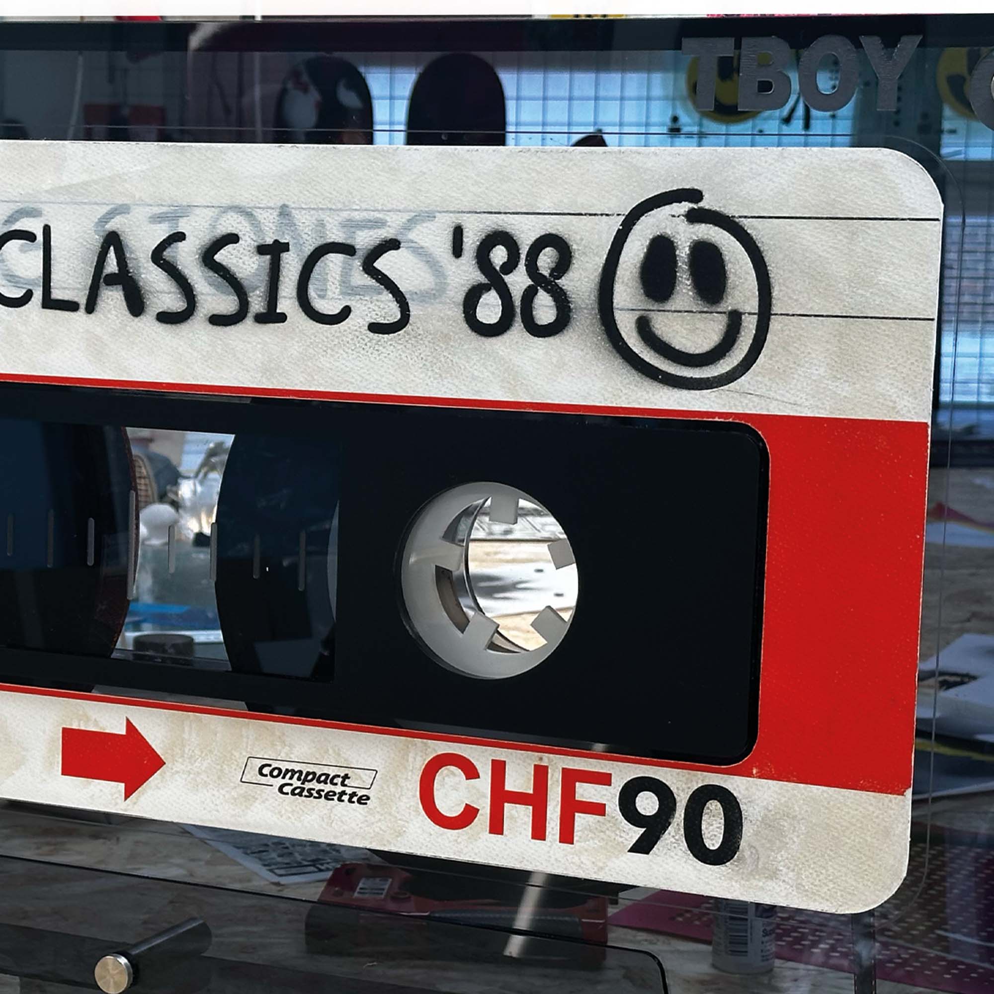 This is a prototype supersized scale mixtape, based on my childhood. I would tipex out and old cassette to record over.